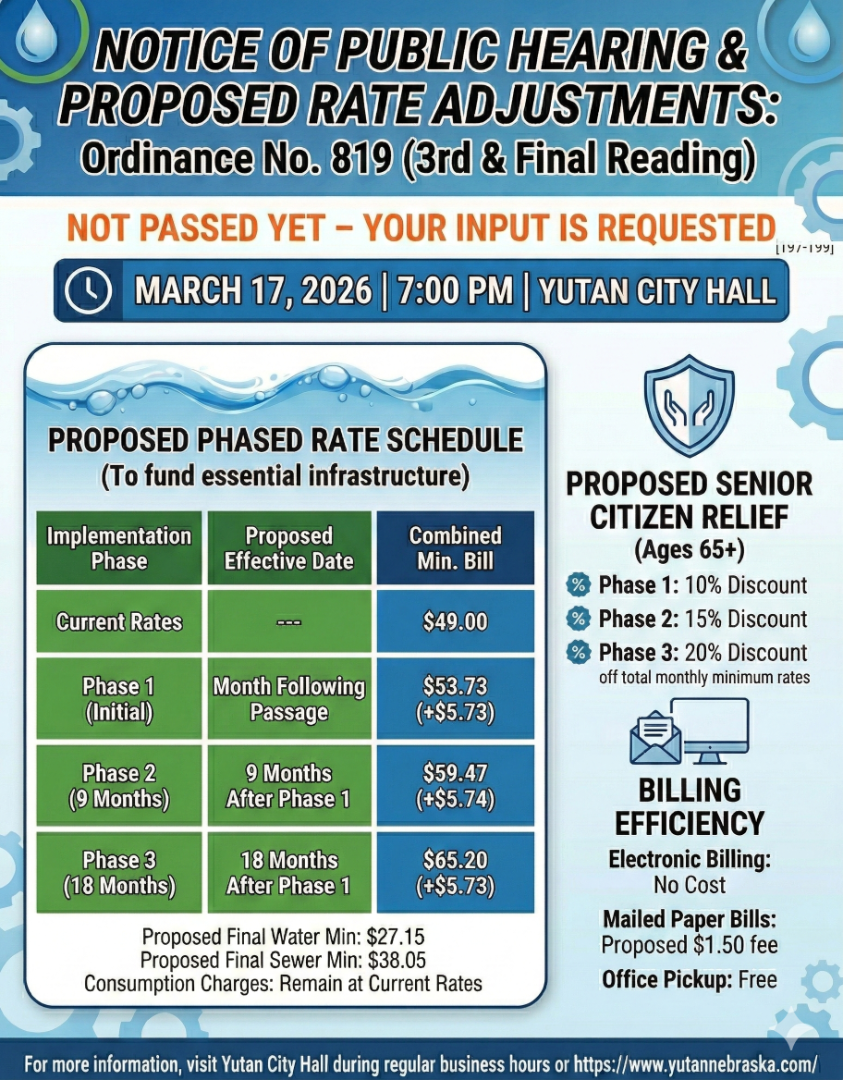 Notice of Public Hearing & Proposed Rate Adjustments-REVISEDFebruary 24, 2026 Ordinance 819 (3rd Reading)